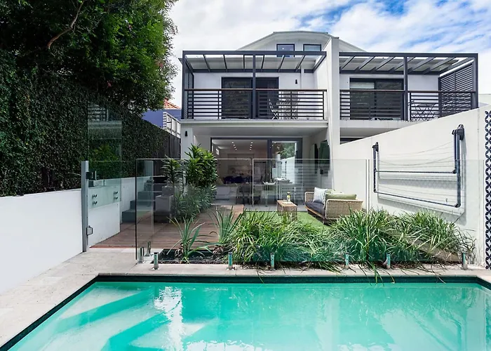 ベッドルーム3室のBella Vita Bondi シドニー ヴィラは、ボンダイ・パークから徒歩でたった8分に位置し、プライベートなプールでリラックスしたひとときを過ごすことができます。
